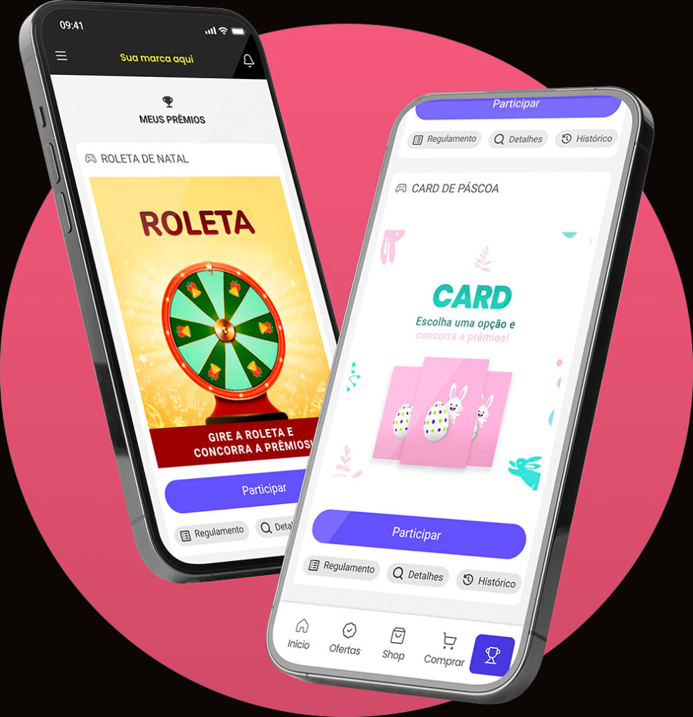 Raspadinhas digitais, roletas, sorteios, giros e selos.