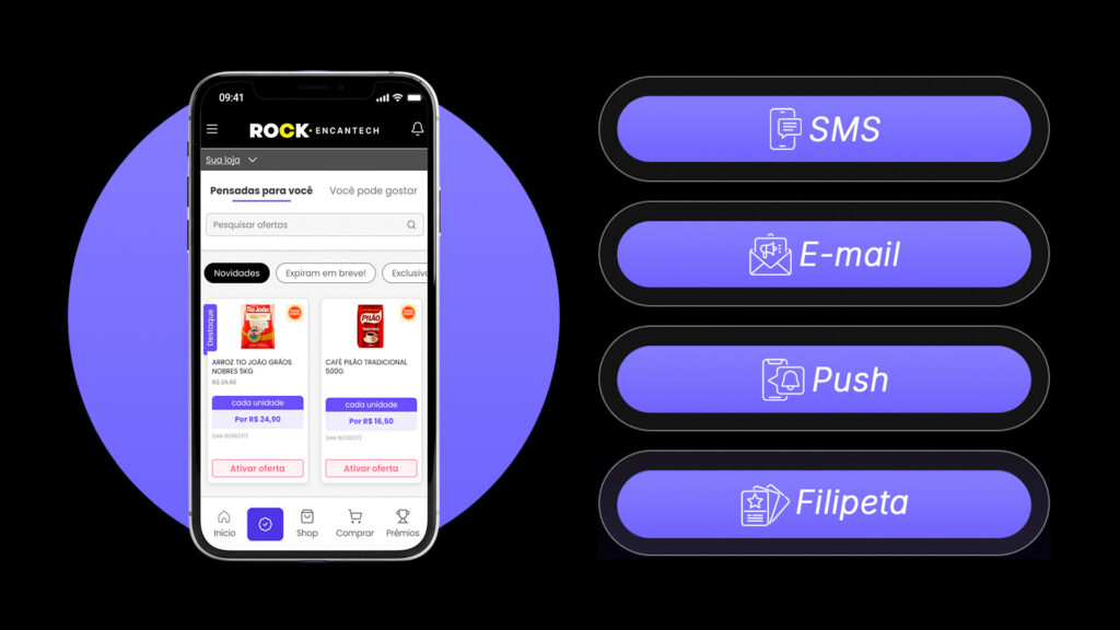 PDV, ERP e e-commerce conectados à régua de relacionamento.